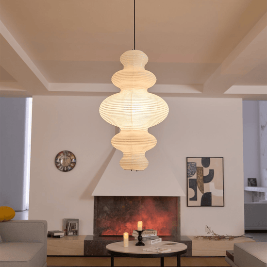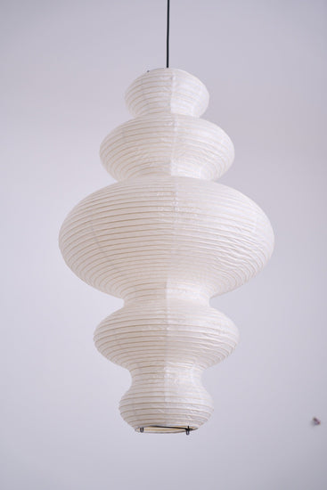 Transform your space with the Akari Juni Pendant Lamp - a true testament to exquisite craftsmanship and luxury. Made with delicate rice paper. this sculptural light adds a visual element unlike any other. Elevate and illuminate your room with refined beauty and superior quality.