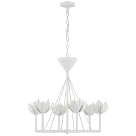 The Alberto collection by banerge honors artist Diego Giacometti with its graceful floral motifs. Each flower, whether solitary or clustered, blooms with intricate petals that showcase the beauty of plaster as a sculptural medium, enhancing its earthy texture across a range of metallic finishes. Spanning sconces, chandeliers, lamps, and lanterns, this distinctive and versatile collection is perfectly suited for dining rooms, entryways, living rooms, bedrooms, and bathrooms.