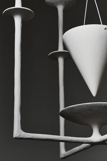 Defined by soft curves and a sculptural silhouette, the Aura suspension is handcrafted from sculpted plaster, offering a harmonious blend of texture and light. Its refined form brings an artistic, serene presence to any space, whether used individually or in a composition.