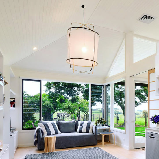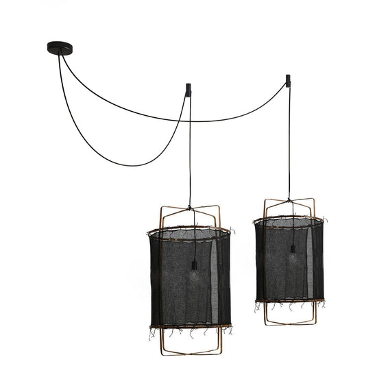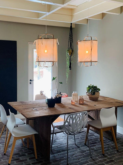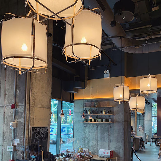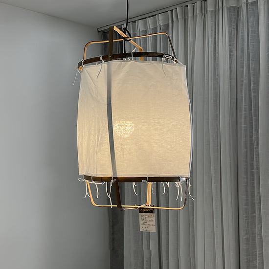This Ay Illuminate Pendant Light is made of natural bamboo. providing a stylish addition to any room. With its unique cotton cover. this exotic lamp creates a calming atmosphere while decorating large living spaces. restaurants. or bars. Enjoy illumination year-round with this unique and sophisticated piece.