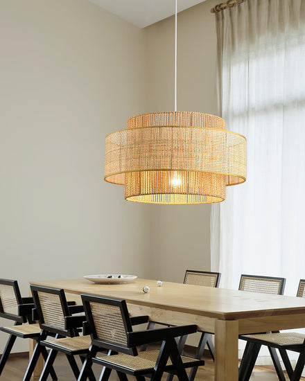 Elevate your space with our exquisite Japanese Concentric Pendant Light. Available in five sizes . the seamless fusion of rattan and hemp rope captures timeless beauty. Embrace the art of imperfection as this pendant light effortlessly enhances any room with an authentic touch of natural elegance.