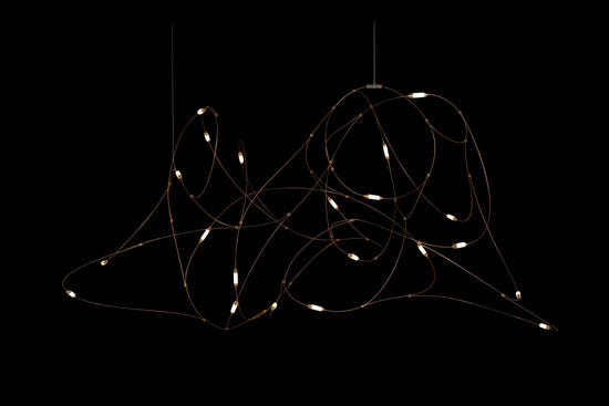 Igniting a visual experience of light and movement, the Flock of Light Suspension Light adds dynamic beauty to your home. Inspired by the graceful movements of fireflies, this LED chandelier fuses elegance and artistry for a true dining or entryway centerpiece. The bronze wires and diffusers create an elegant line drawing, while the warm LED light adds a seductive glow.