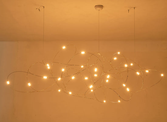 Igniting a visual experience of light and movement, the Flock of Light Suspension Light adds dynamic beauty to your home. Inspired by the graceful movements of fireflies, this LED chandelier fuses elegance and artistry for a true dining or entryway centerpiece. The bronze wires and diffusers create an elegant line drawing, while the warm LED light adds a seductive glow.