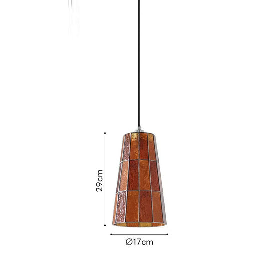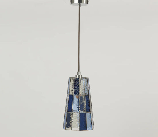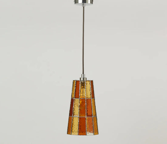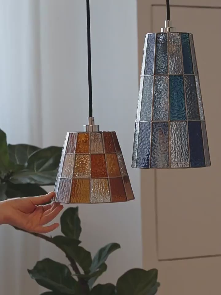 Materials: Stained glass; choice of brushed nickel, natural brass, blackened brass, brushed gold