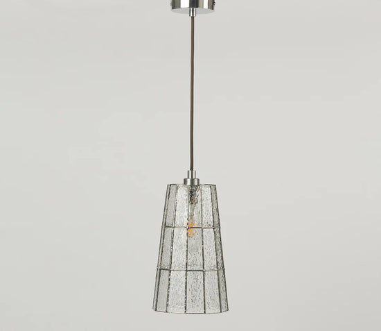 The Fun Guy pendant's shade is made of 32 pieces of glass — all meticulously cut, foiled, and soldered by hand — and is available in a range of colors. It's the perfect pop of color for above a kitchen counter or dining table, among others. If ordering natural aluminum, please specify brushed or polished finish at checkout. Custom colors and finishes available upon request.