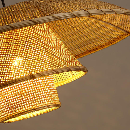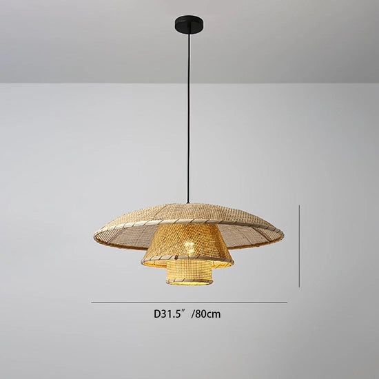 This chandelier marries the earthy texture of hand-woven rattan with the sleek durability of metal. creating a piece that's both playful and refined. The wide brim of the 'hat' is crafted from interlaced rattan. allowing light to peek through and cast a warm. mottled glow that is reminiscent of dappled sunlight through a straw hat. The metal elements provide a contemporary contrast. ensuring that the chandelier holds a sense of balance and modernity.