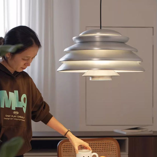 The Hive Pendant is inspired by organic silhouettes found in nature and skillfully plays with basic geometric forms, figures and systems. Constructed of multiple concentric shades of varying size, the layered design of the Hive offers a very characteristic and sculptural quality. Place in single or multiples to add an organic statement to your decor. Finished in Polished Aluminum or Yellow. Ceiling canopy in same colour/finish as lamp. UL and CE listed.