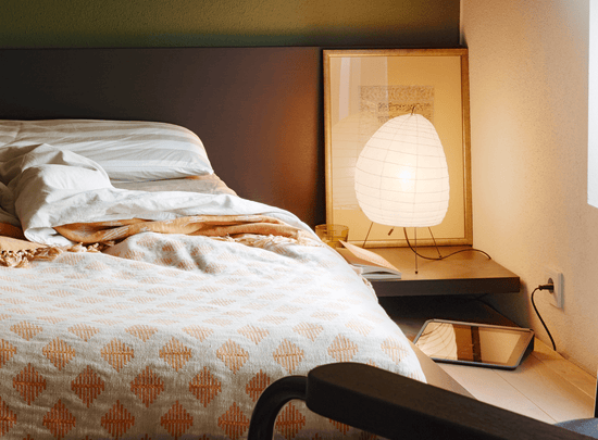 Bring a touch of organic serenity to your space with the Komi Paper Table Lamp. Inspired by the gentle interplay of light and shadow through paper screens. its soft. cocoon-like form glows with calming warmth. Crafted from delicate washi-style paper and supported by minimalist black legs. this lamp merges traditional aesthetics with modern simplicity.