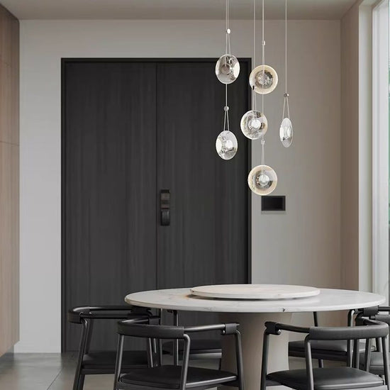 Versatile Configuration: Supports staggered hanging arrangements. Whether for a vertical void in a staircase or above a cozy dining table, the adjustable heights create a dynamic visual flow akin to dancing musical notes.