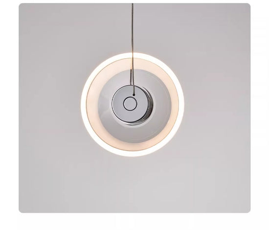 Modern minimalist luxury floating crystal chandelier | Minimalist artistic translucent disc design | Nordic style lighting fixture for living room, dining room, and staircase.