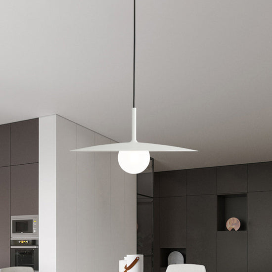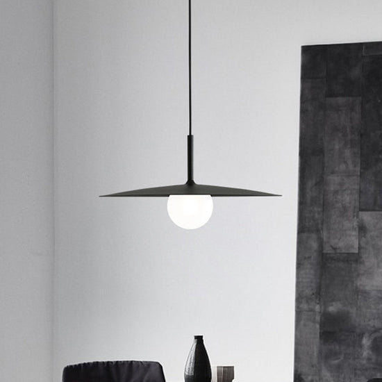 This product is perfect for brightening up your favorite area with its chic and modern design. This Nordic Flying Saucer Hanging Light Metal Single Restaurant Ceiling Pendant with Ball Milk Glass Shade in Black/Grey/White is the perfect statement piece for any room. It features a 10/12.5 wide metal and glass fixture with a sleek. modern style perfect for contemporary designs. The round canopy shape and black/grey/white color is timeless and provides a subtle yet sophisticated touch of style that will add a touch of elegance to any space. This light is powered by three different voltage sources. 110V-120V. 220V-240V. and bulb bases E12. making it all the more versatile. With no included bulbs. you can choose the option of LED/Incandescent/Fluorescent light types to create a perfect light atmosphere. Its single-light feature is perfect to illuminate any room while its 36 height brings an air of grandeur. Furthermore. the wall-mounted. indoor fixture type allows for easy installation against a wall of your choice. This pendant light is perfect for any room to create the atmosphere you wish at any time of day. This stylish and modern pendant is the perfect choice for any home.