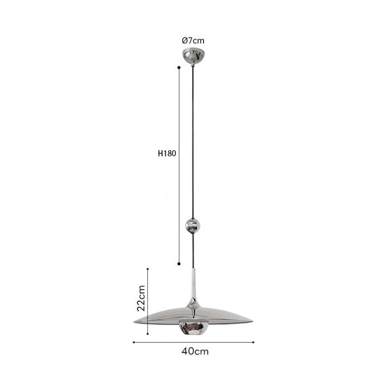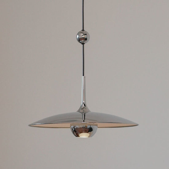 This large, adjustable, chrome-plated counterweight chandelier was designed by German designer Florian Schulz in the 1970s. Lamp holder: 1 standard E27 bulb, maximum power 150 watts, compatible with US/UK standards, etc.