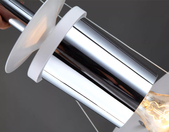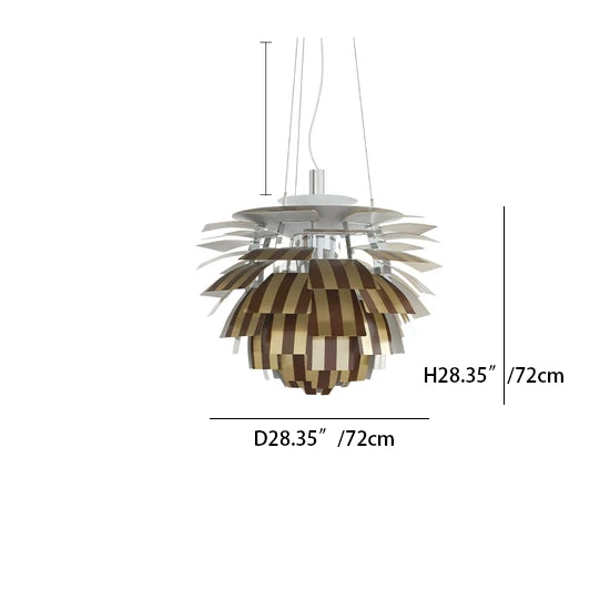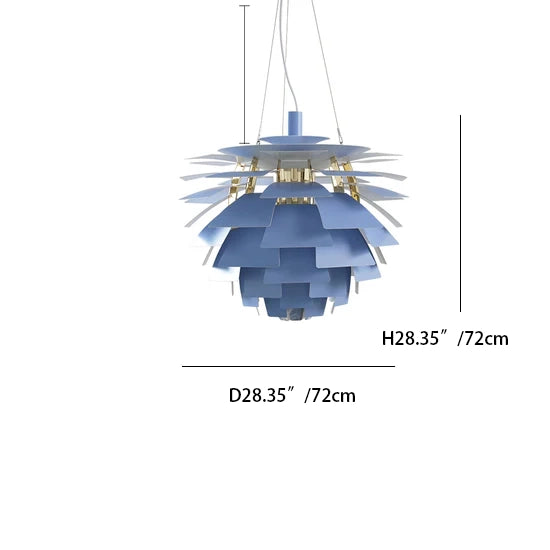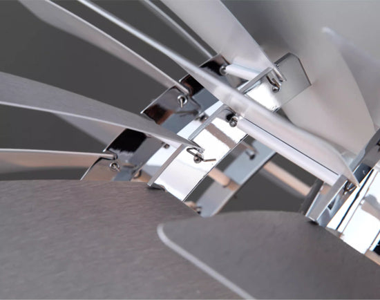 72 metal leaves form 12 precise rows with six leaves each to ensure a flawless non-glaring light no matter from which angle the remarkable pendant is viewed.