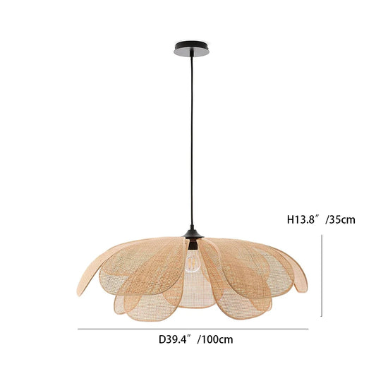 This Rattan Petal Pendant Lamp stands out with its unique organic shape crafted from natural rattan for a beautiful contrast of textures. Create a warm and stylish atmosphere in any space with this eye-catching piece of decor. Transform any room into a showstopper with this statement piece of artful beauty.