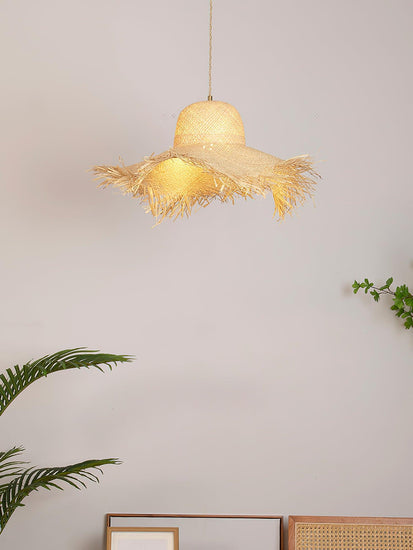 Rattan Straw Hat Pendant Light