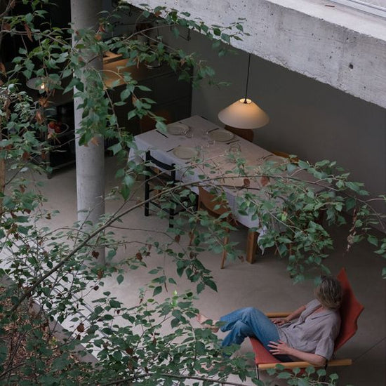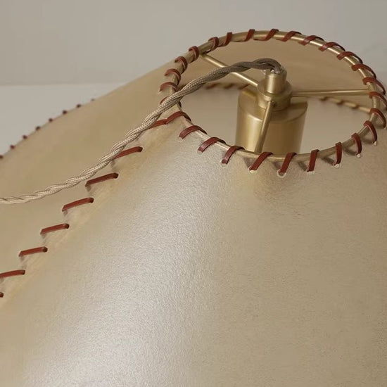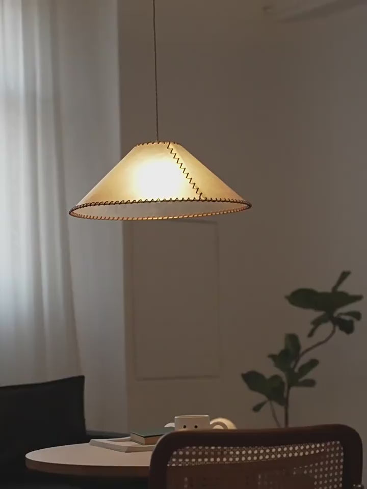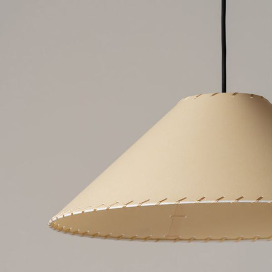 The flat conical shape of the Sísísí Cónicas Planas MT4 and MY5 lampshades have a familiar, archetypal silhouette. Its volume may be robust, but it is light in its adaptability to the space. Designed by Gabriel Ordeig in 1987 as a vindication of cardboard and its warm translucence, this shade is an invitation to make the most of table talks. The two options of stitched cardboard, in beige or white, allow for harmonious coexistence between object and user. UL listed. Manufactured by Santa & Cole.