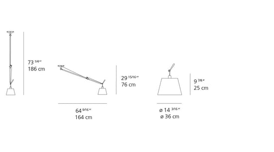 The Tolomeo Off Center Suspension from Artemide is a stylish, functional light fixture that is perfect for any room in your home. Featuring polished aluminum arms and a choice of grey or parchment shades, this fixture is fully adjustable and can be directed wherever you need it, even when the junction box is not centered. A rotatable canopy allows you to customize the light output, and one 100-watt max 120-volt medium base bulb is required (not included). This fixture is UL listed and available in four different shade sizes.