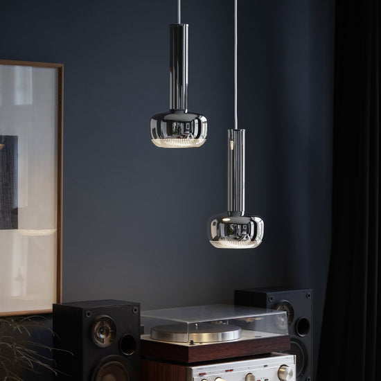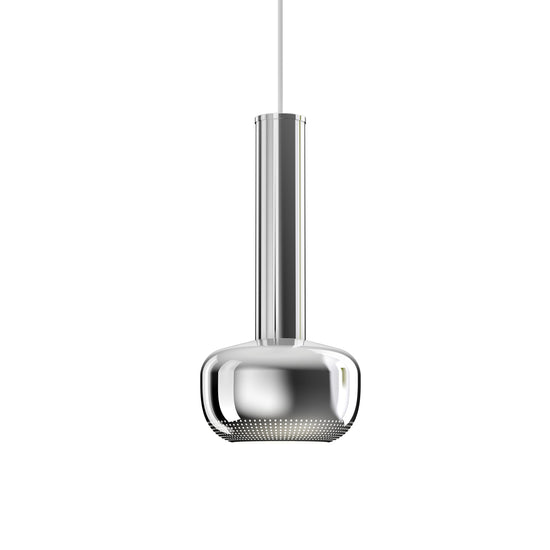 The VL 56 Pendant Light was designed by Vilhelm Lauritzen. for Folkets Hus in Copenhagen. The building was a complete work by Lauritzen. for which he designed everything from doorknobs and staircases to furniture and lamps. The VL 56 Pendant Light is still found above the bar. in the building which today is a concert venue known as Vega. Both the chrome and brass pendants provide exceptional downward directed light. and the radial perforation pattern softens the contrast between light and darkness. while casting a beautiful pattern onto the surrounding surfaces.
